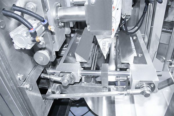 La máquina envasadora se controla por un servomotor Panasonic y se utiliza un sistema de estirado del film simple/doble para garantizar la estabilidad del transporte de la lámina y el formado perfecto de la bolsa. El cilindro neumático SMC/Airtac ofrece un mejor sellado y reduce el porcentaje de fallas.