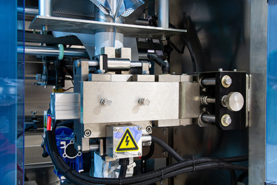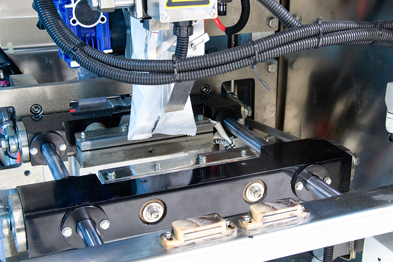 La máquina envasadora se controla por un servomotor Panasonic y se utiliza un sistema de estirado del film simple/doble para garantizar la estabilidad del transporte de la lámina y el formado perfecto de la bolsa. El cilindro neumático SMC/Airtac ofrece un mejor sellado y reduce el porcentaje de fallas.